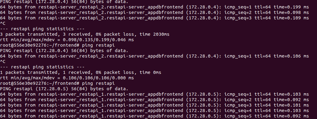 $ ping결과:172.28.0.4와172.28.0.5두 애플리케이션 서버에 적절히 LB해주는 것을 볼 수 있고, Redis로 scalablity를 제공한다.- 도커를 통한 스케일링은 컴포즈 설정에